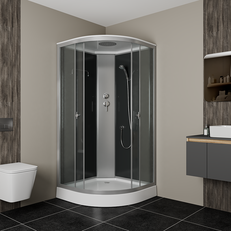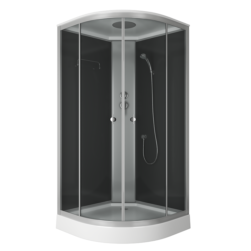 Душевая кабина BAU Dream Hit Black 100x100х215, прозрачное закаленное стекло, черная не будет загромождать пространство ванной комнаты благодаря своим небольшим габаритным размерам и дизайну. Кабина выполнена в форме четверти круга со стороной 100 см, использовано прозрачное закаленное стеклянное полотно. Профиль выполнен из алюминия. Этот лёгкий и прочный материал хорошо переносит повышенную влажность в ванной комнате.