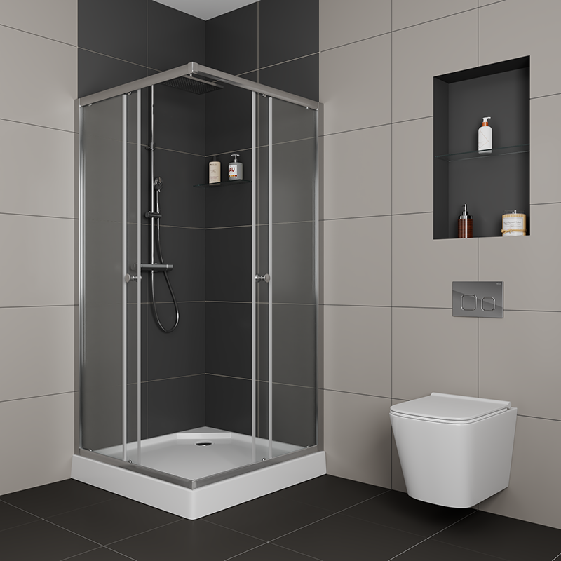 Душевой уголок BAU Stil Hit с поддоном 90x90х195, прозрачное закаленное стекло, хромированный профиль не будет загромождать пространство ванной комнаты благодаря своим небольшим габаритным размерам и дизайну. Уголок выполнен в форме квадрата со стороной 90 см, использовано прозрачное закаленное стеклянное полотно. Профиль выполнен из алюминия. Этот лёгкий и прочный материал хорошо переносит повышенную влажность в ванной комнате.