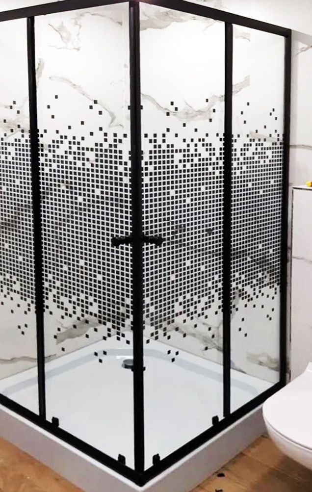 Душевой уголок BAU Stil квадратный с поддоном 90x90х195, прозрачное закаленное стекло с черным рисунком 5 мм, черный матовый профиль