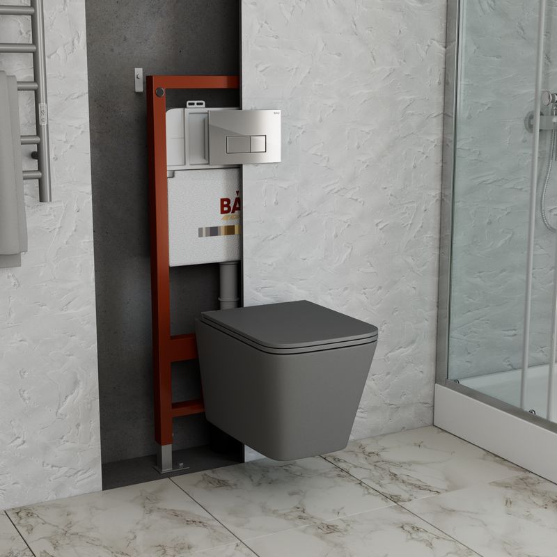 Комплект BAU 6 в 1: инсталляция BAU PRO, унитаз подвесной безободковый торнадо обратного потока Bau Stil Hurricane-2, сиденье дюропласт микролифт,темно-серый матовый, кнопка смыва BAU Hotel, хром.