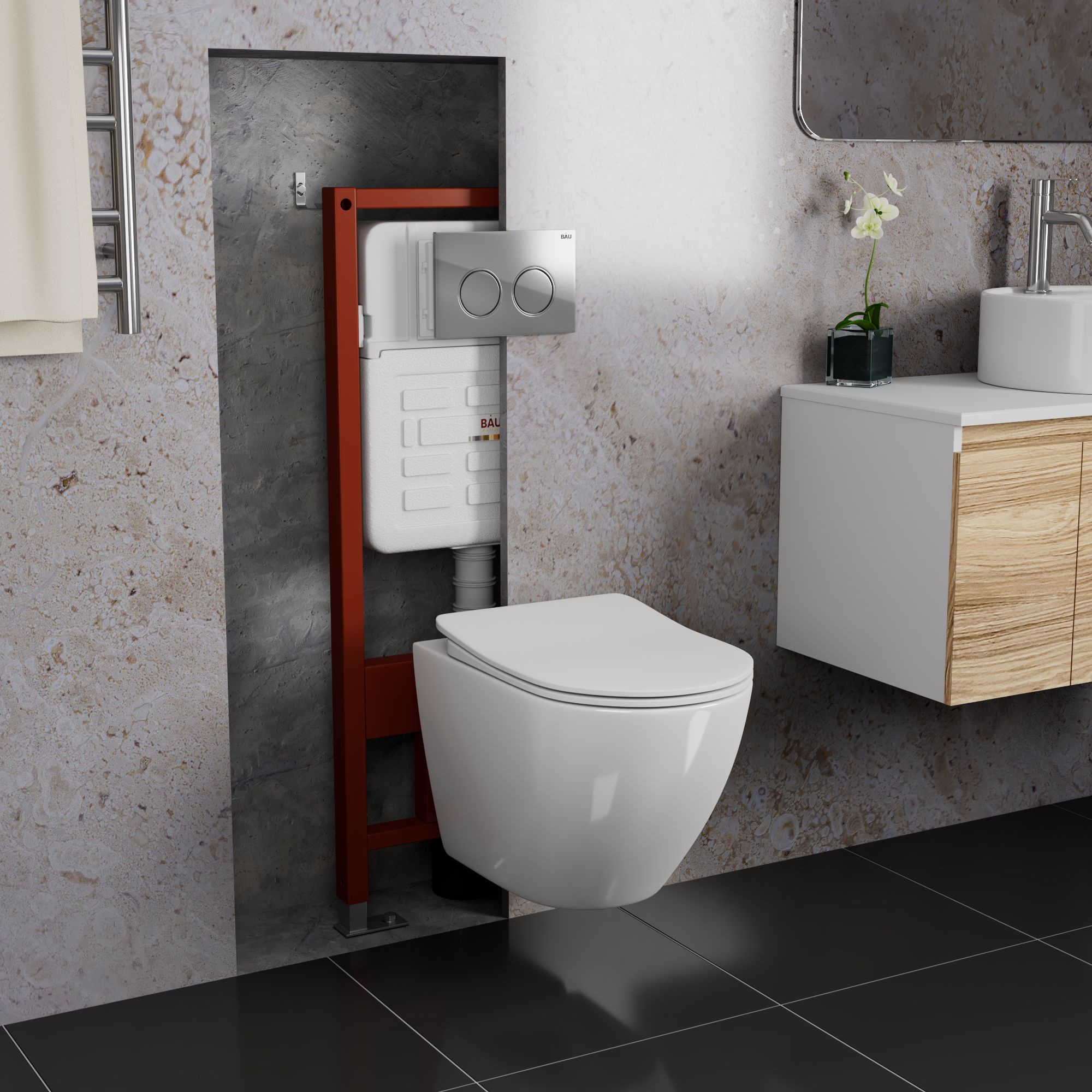 Рамная усиленная инсталляция BAU IDEAL для подвесного унитаза.