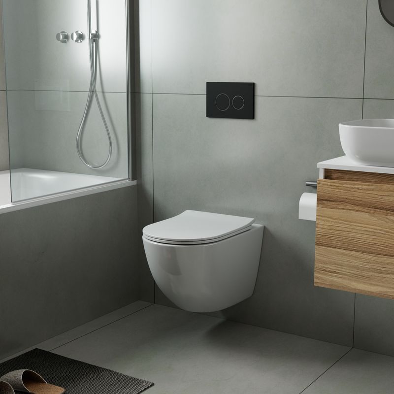 Комплект BAU включает в себя инсталляцию BAU PRO для подвесного унитаза, унитаз безободковый BAU Dream PRO-2, быстросъемное тонкое сиденье с микролифтом и клавишу смыва Кнопка смыва BAU Dream для инсталляции, черный матовый.