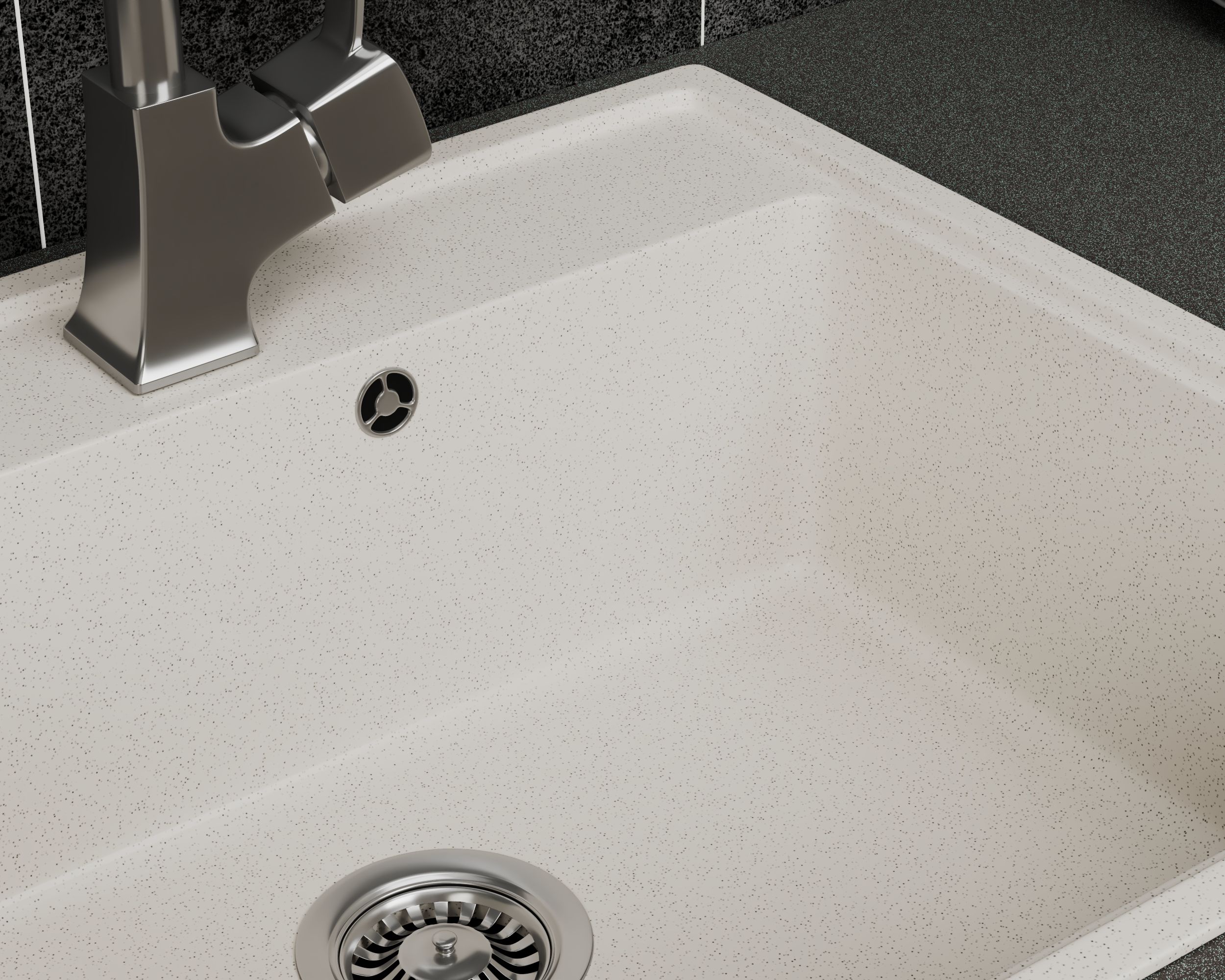 - Капли воды не растекаются по поверхности мойки, обеспечивая низкую степень увлажнения и загрязнения.