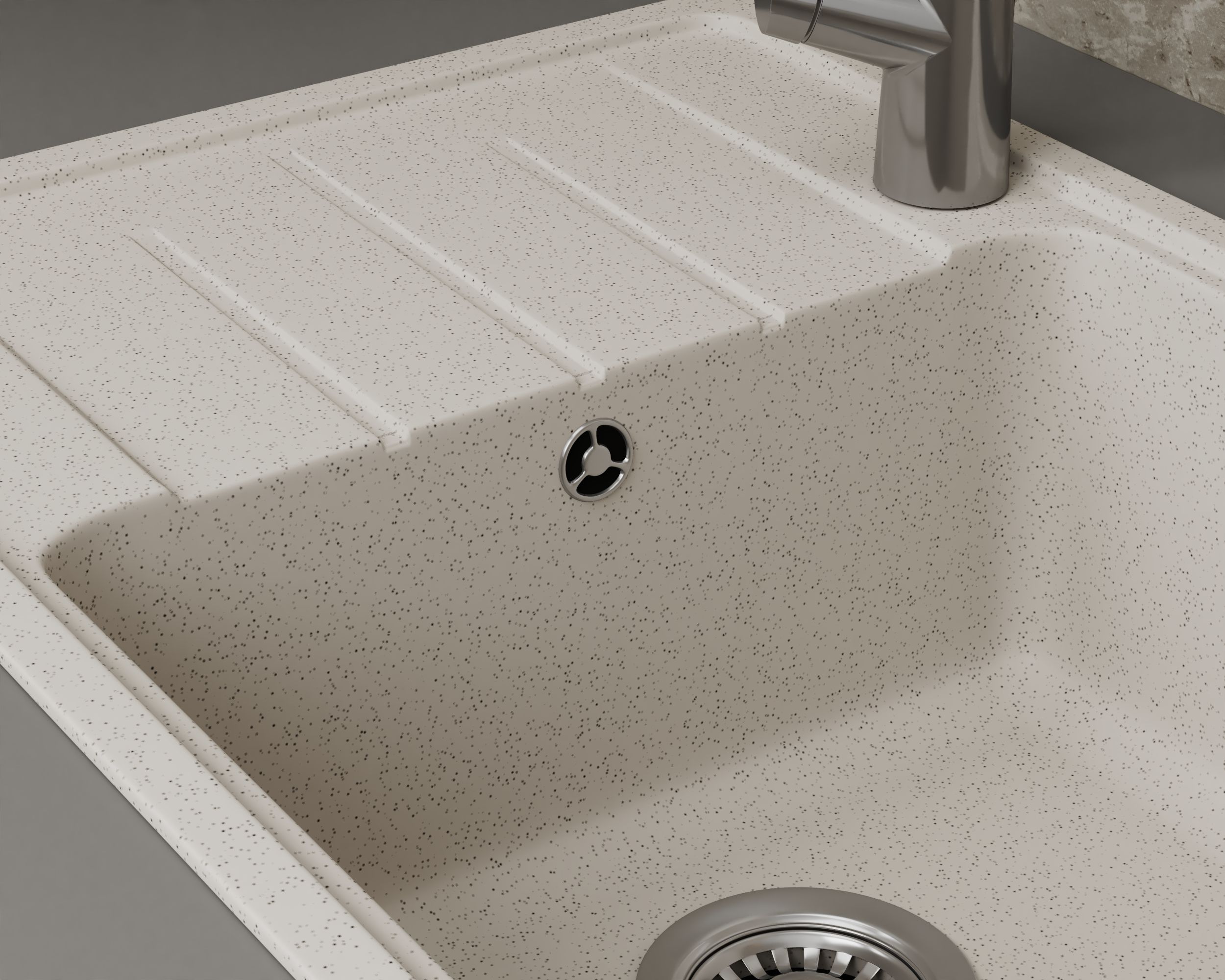 - Капли воды не растекаются по поверхности мойки, обеспечивая низкую степень увлажнения и загрязнения.