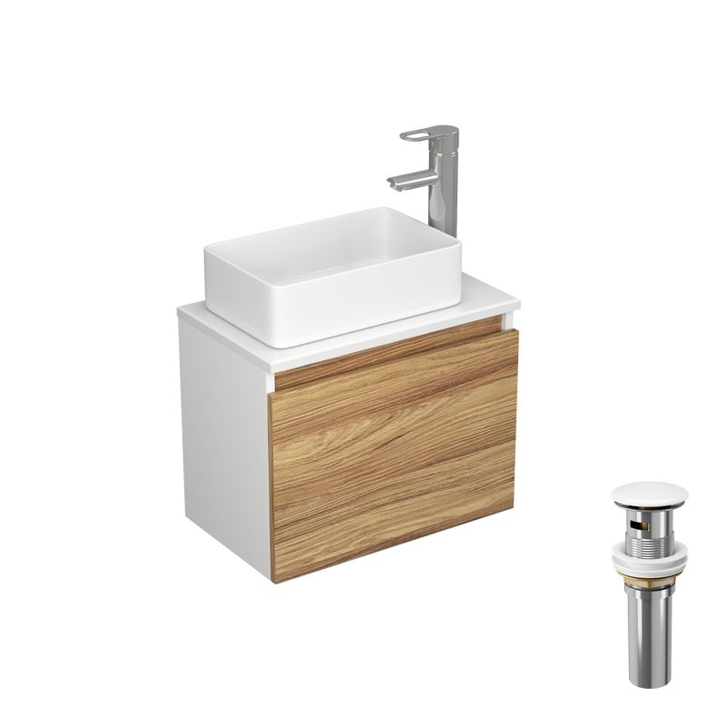 Дизайнерская коллекция мебели для ванной, которую может позволит себе каждый! Тумба под раковину Bau Dream Blackwood 50 - современное и оригинальное решение для оснащения ванной комнаты. Тумба для ванной Bau исполнена - фасад дуб Blackwood- классический белый корпус- матовая столешница с поверхностью Soft-touch, что позволяет ей вписаться в любой интерьер современной ванной. Подвесная тумба Bau Dream Blackwood 50 изготовлена из экологически чистых и удивительно долговечных материалов по специальной технологии полного цикла на российском производстве, которое не уступающей ведущим немецким технологиям и обеспечивает насыщенный цвет в течение всего срока службы (от 10 лет)!!! Отверстие под смеситель можно разместить в любом удобном для вас месте с помощью мебельной фрезы 3,5 см. Раковина накладная прямоугольная BAU Hotel mini 24х24, белая — это рациональное использование свободного пространства в маленьком помещении — один из самых важных пунктов во время полноценного или косметического ремонта ванной комнаты. Чтобы не занимать место крупногабаритными конструкциями, стоит приобрести накладную раковину. Раковина изготовлена из санфарфора. Плюсы санфарфора: высокие прочность и плотность, натуральный белый цвет, минимальное влагопоглощение, гигиеничность, долговечность. Выпуск для раковины BAU клик-клак, хром – это удобная система слива, долговечность и элегантный внешний вид водосливной арматуры. Автоматический слив-перелив системы клик клак удобнее, чем пробки-заглушки и универсальные сливы. Надавливая на крышку, мы приостанавливаем слив воды. Донный клапан клик клак герметичен и позволяет набрать воды в умывальник, чтобы сделать ванночку для рук или замочить пятна на белье. Выпуск для умывальника имеет элегантный внешний вид и хромированную крышку. Механизм слива клик клак с пружиной рассчитан на 50 000+ циклов работы. Корпус донного клапана выполнен из долговечной латуни, а хромированное покрытие защищает его от коррозии. Универсальная резьба делает легким монтаж выпуска с латунными и пластиковыми сифонами. Смеситель для раковины высокий Hotel. Цвет Серебристый. Корпус смесителя изготовлен из латуни с рычажным управлением, запорный клапан керамический картридж. В состав комплекта входят: