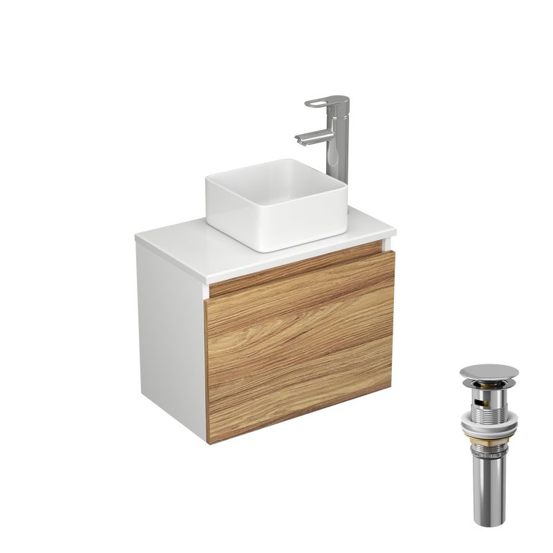 Дизайнерская коллекция мебели для ванной, которую может позволит себе каждый! Тумба под раковину Bau Dream Blackwood 50 - современное и оригинальное решение для оснащения ванной комнаты. Тумба для ванной Bau исполнена - фасад дуб Blackwood- классический белый корпус- матовая столешница с поверхностью Soft-touch, что позволяет ей вписаться в любой интерьер современной ванной. Подвесная тумба Bau Dream Blackwood 50 изготовлена из экологически чистых и удивительно долговечных материалов по специальной технологии полного цикла на российском производстве, которое не уступающей ведущим немецким технологиям и обеспечивает насыщенный цвет в течение всего срока службы (от 10 лет)!!! Отверстие под смеситель можно разместить в любом удобном для вас месте с помощью мебельной фрезы 3,5 см. Раковина накладная прямоугольная BAU Hotel mini 24х24, белая — это рациональное использование свободного пространства в маленьком помещении — один из самых важных пунктов во время полноценного или косметического ремонта ванной комнаты. Чтобы не занимать место крупногабаритными конструкциями, стоит приобрести накладную раковину. Раковина изготовлена из санфарфора. Плюсы санфарфора: высокие прочность и плотность, натуральный белый цвет, минимальное влагопоглощение, гигиеничность, долговечность. Выпуск для раковины BAU клик-клак, хром – это удобная система слива, долговечность и элегантный внешний вид водосливной арматуры. Автоматический слив-перелив системы клик клак удобнее, чем пробки-заглушки и универсальные сливы. Надавливая на крышку, мы приостанавливаем слив воды. Донный клапан клик клак герметичен и позволяет набрать воды в умывальник, чтобы сделать ванночку для рук или замочить пятна на белье. Выпуск для умывальника имеет элегантный внешний вид и хромированную крышку. Механизм слива клик клак с пружиной рассчитан на 50 000+ циклов работы. Корпус донного клапана выполнен из долговечной латуни, а хромированное покрытие защищает его от коррозии. Универсальная резьба делает легким монтаж выпуска с латунными и пластиковыми сифонами. Смеситель для раковины высокий Dream. Цвет Серебристый. Корпус смесителя изготовлен из латуни с рычажным управлением, запорный клапан керамический картридж. В состав комплекта входят: