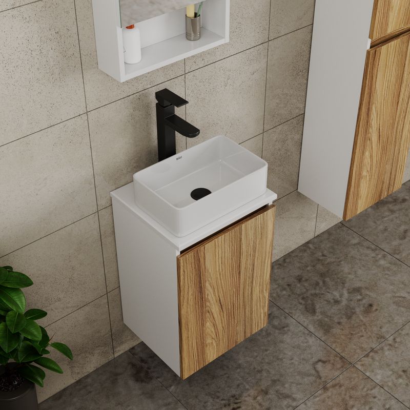 Раковина накладная прямоугольная BAU Hotel mini 37х23, белая — это рациональное использование свободного пространства в маленьком помещении — один из самых важных пунктов во время полноценного или косметического ремонта ванной комнаты.