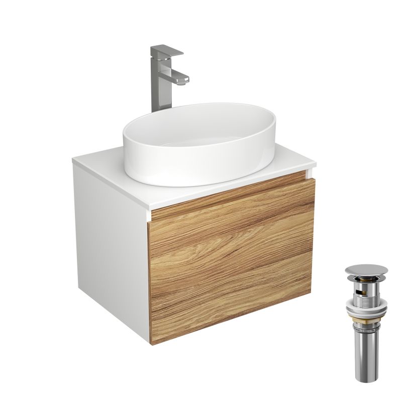 Дизайнерская коллекция мебели для ванной, которую может позволит себе каждый! Тумба под раковину Bau Dream Blackwood 60 - современное и оригинальное решение для оснащения ванной комнаты. Тумба для ванной Bau исполнена: - фасад дуб Blackwood- классический белый корпус- матовая столешница с поверхностью Soft-touch, что позволяет ей вписаться в любой интерьер современной ванной. Подвесная тумба Bau Dream Blackwood 50 изготовлена из экологически чистых и удивительно долговечных материалов по специальной технологии полного цикла на российском производстве, которое не уступающей ведущим немецким технологиям и обеспечивает насыщенный цвет в течение всего срока службы (от 10 лет)!!! Отверстие под смеситель можно разместить в любом удобном для вас месте с помощью мебельной фрезы 3,5 см. Раковина накладная круглая BAU Dream D41, белая - это рациональное использование свободного пространства в маленьком помещении — один из самых важных пунктов во время полноценного или косметического ремонта ванной комнаты. Чтобы не занимать место крупногабаритными конструкциями, стоит приобрести накладную раковину. Раковина изготовлена из санфарфора. Плюсы санфарфора: высокие прочность и плотность, натуральный белый цвет, минимальное влагопоглощение, гигиеничность, долговечность. Выпуск для раковины BAU клик-клак, хром – это удобная система слива, долговечность и элегантный внешний вид водосливной арматуры. Автоматический слив-перелив системы клик клак удобнее, чем пробки-заглушки и универсальные сливы. Надавливая на крышку, мы приостанавливаем слив воды. Донный клапан клик клак герметичен и позволяет набрать воды в умывальник, чтобы сделать ванночку для рук или замочить пятна на белье. Выпуск для умывальника имеет элегантный внешний вид и хромированную крышку. Механизм слива клик клак с пружиной рассчитан на 50 000+ циклов работы. Корпус донного клапана выполнен из долговечной латуни, а хромированное покрытие защищает его от коррозии. Универсальная резьба делает легким монтаж выпуска с латунными и пластиковыми сифонами. Смеситель для раковины высокий Hotel. Цвет Серебристый. Корпус смесителя изготовлен из латуни с рычажным управлением, запорный клапан керамический картридж. В состав комплекта входят: