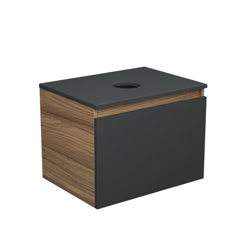 Тумба подвесная под раковину Bau Dream Blackwood 60, 1 ящик графит;Раковина накладная прямоугольная BAU Hotel 48х37, белая;Смеситель для умывальника высокий Hotel Black, черный |