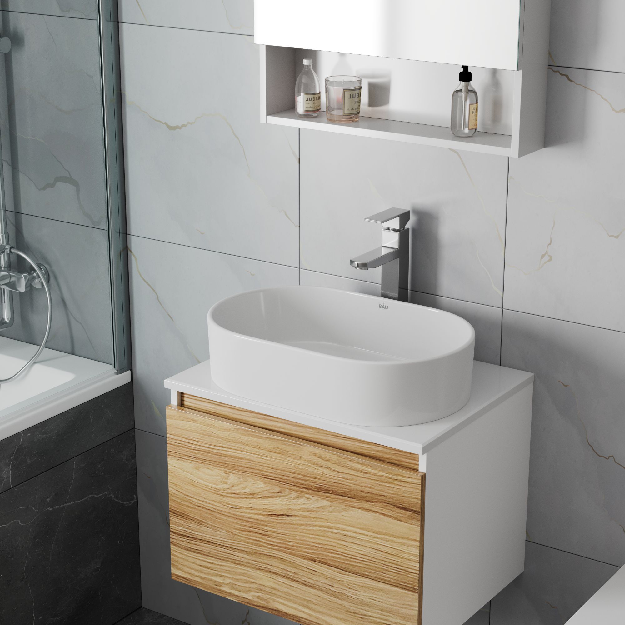 Раковина накладная овальная BAU Nimb 56х36, белая - это рациональное использование свободного пространства в маленьком помещении — один из самых важных пунктов во время полноценного или косметического ремонта ванной комнаты.