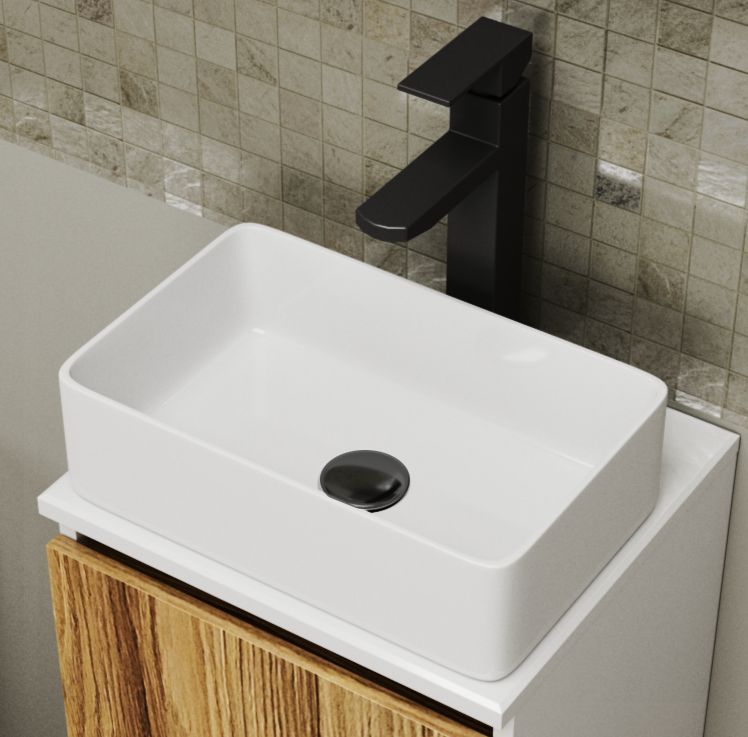 Раковина накладная прямоугольная BAU Hotel mini 37х23, белая — это рациональное использование свободного пространства в маленьком помещении — один из самых важных пунктов во время полноценного или косметического ремонта ванной комнаты.