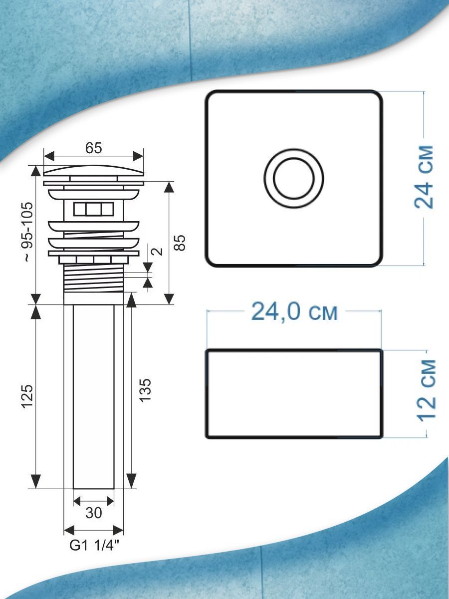 Корпус донного клапана выполнен из долговечной латуни, а хромированное покрытие защищает его от коррозии.