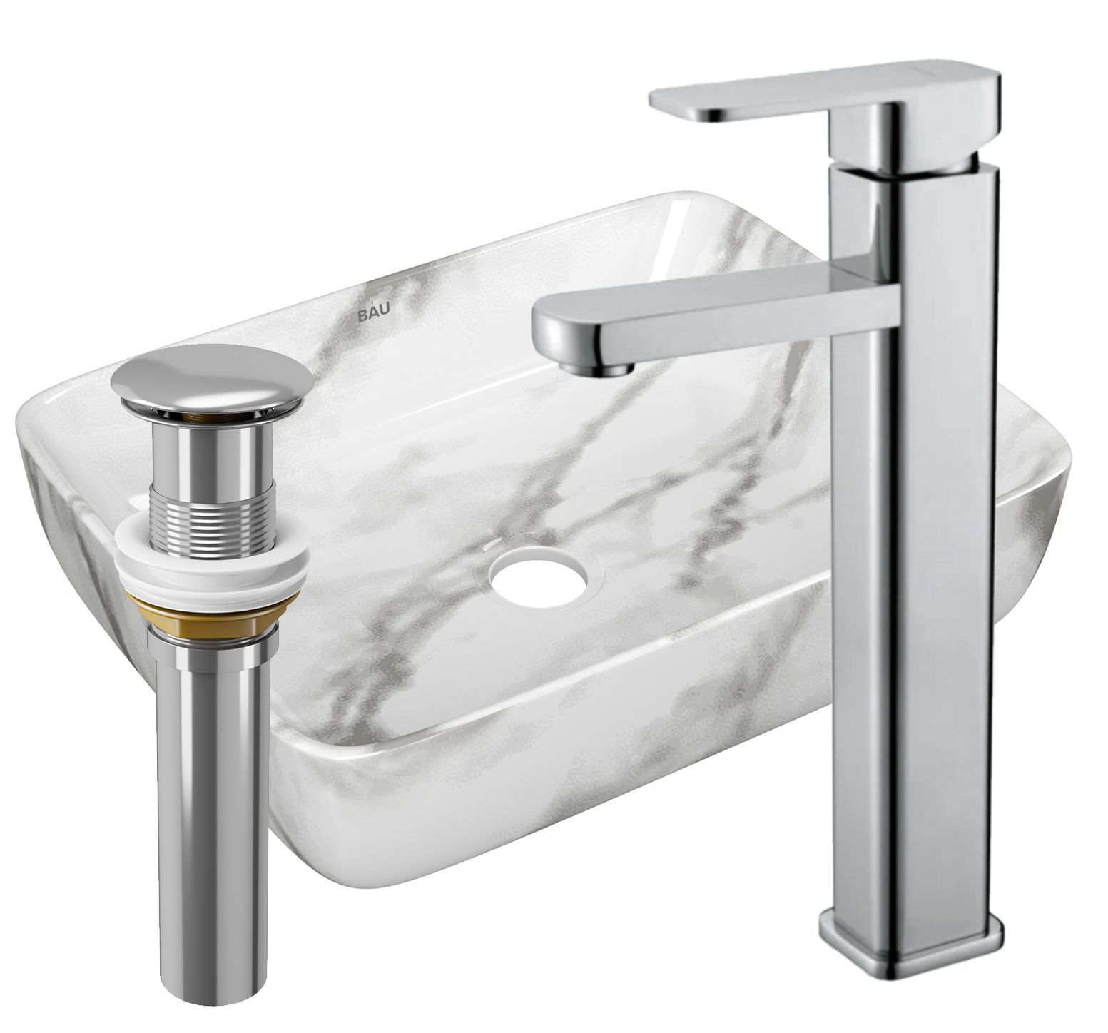 Комплект для ванной от BAUEDGE - современное и оригинальное решение для оснащения ванной комнаты. Идеально подходит для накладных тумб арт BD1060 и BD1080!