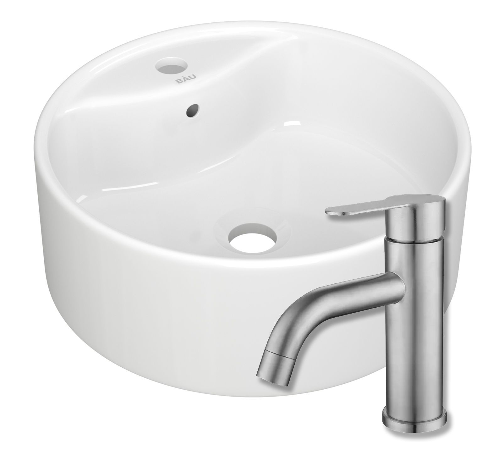 Раковина круглая накладная BAU Element D40, с отверстием под смеситель, белая устанавливается на столешницу, тумбочку или стол и в отличие от встраиваемой, не врезается в ее поверхность. Накладные раковины смотрятся очень оригинально и, при желании оборудовать ванную комнату в духе "Hi-tech", такой выбор будет беспроигрышным.