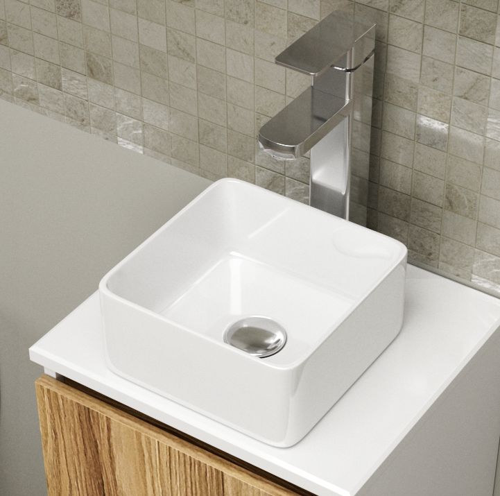Раковина накладная прямоугольная BAU Hotel mini 24х24, белая — это рациональное использование свободного пространства в маленьком помещении — один из самых важных пунктов во время полноценного или косметического ремонта ванной комнаты.
