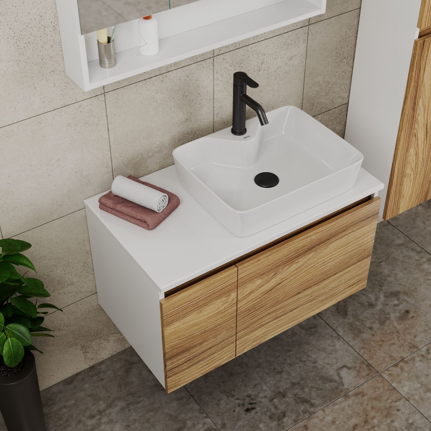 Комплект для ванной от BAUEDGE - современное и оригинальное решение для оснащения ванной комнаты. Идеально подходит для накладных тумб арт BD1060 и BD1080!
