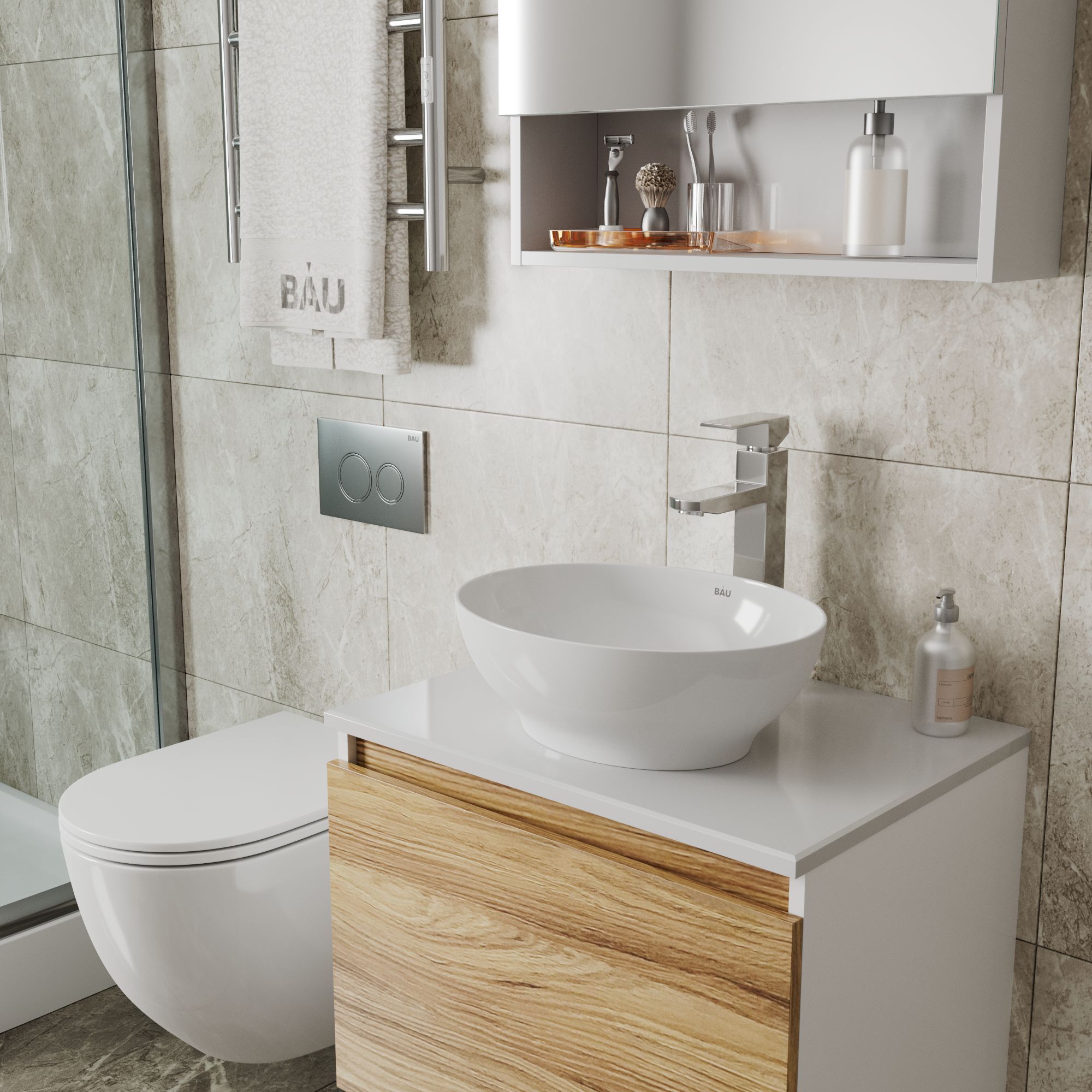 Комплект для ванной от BAUEDGE - современное и оригинальное решение для оснащения ванной комнаты. Идеально подходит для накладных тумб арт BD1060 и BD1080!