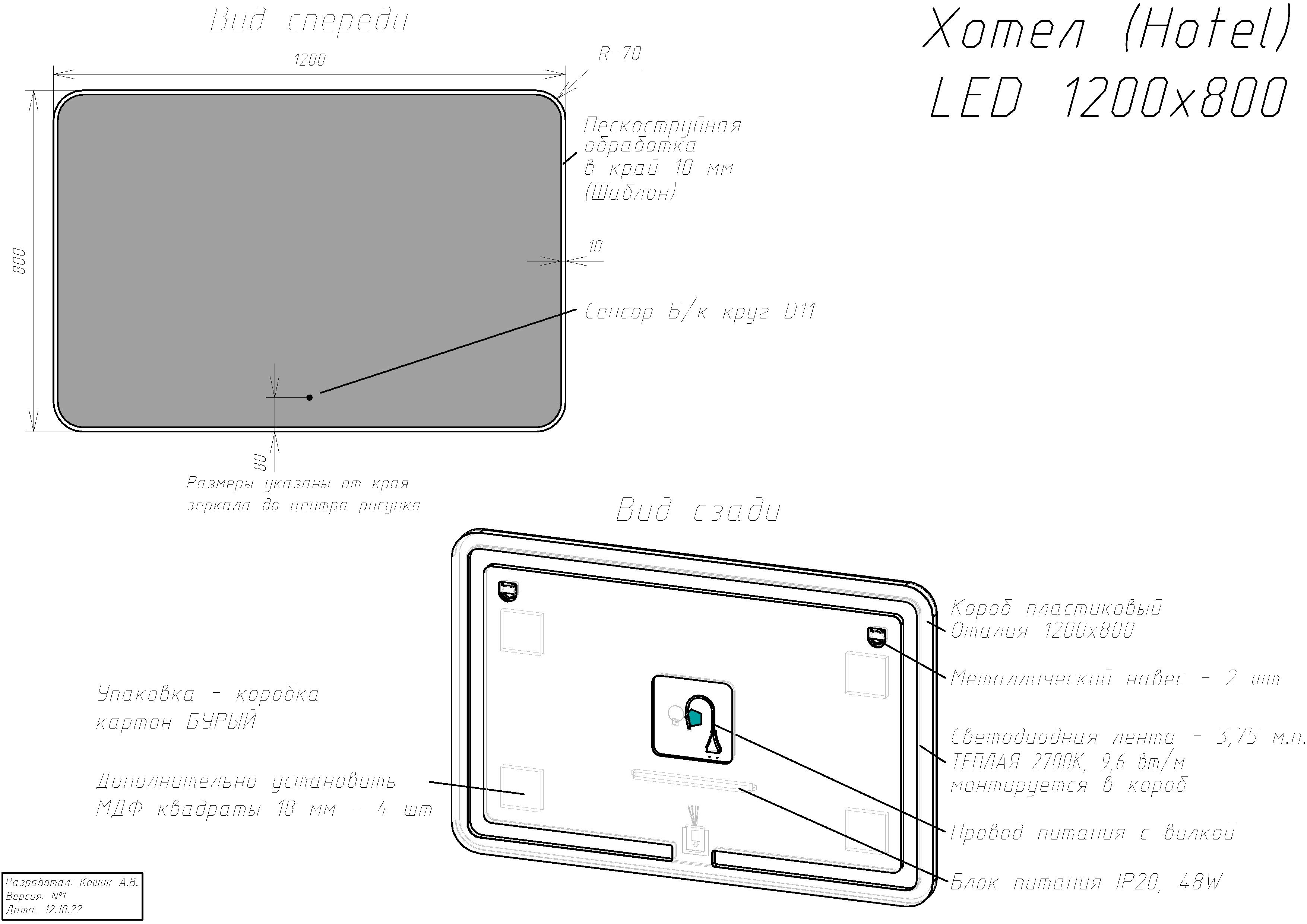 Зеркало с сенсорной LED подсветкой, пластиковый корпус в дополнительной жесткой упаковке Инструкция Гарантийный талон |