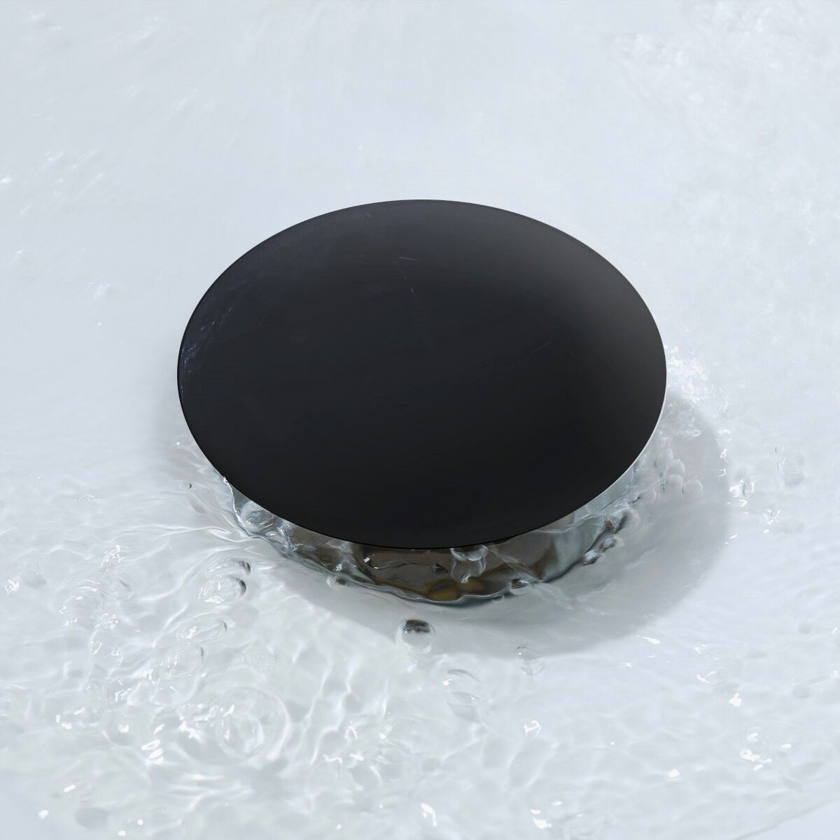 Выпуск для умывальника имеет элегантный внешний вид и черную крышку.