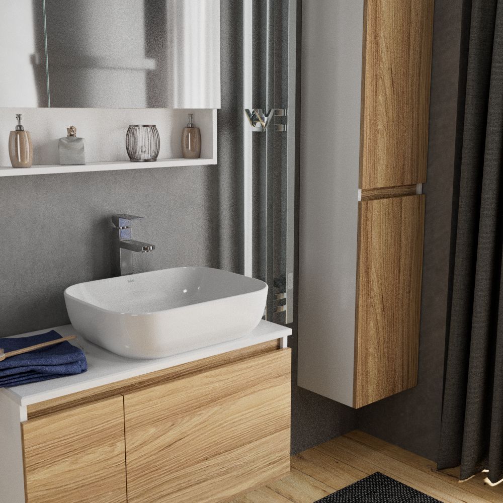 Чтобы не занимать место крупногабаритными конструкциями, стоит приобрести накладную раковину. Раковина подходит для тумб со столешницей практически любых фирм, например: Roca, Cersanit, Triton, Акватон, Акванет, Aqwella, Grossman, Belbagno, Runo и многих других.