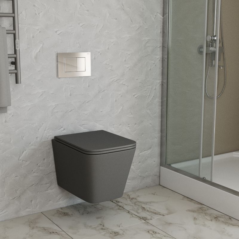 Унитаз подвесной безободковый торнадо обратного потока Bau Stil Hurricane-2, сиденье дюропласт микролифт, темно-серый матовый.