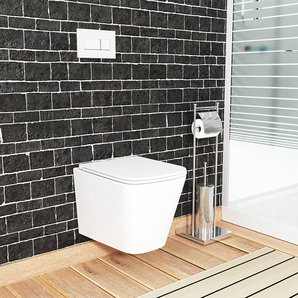 Унитаз подвесной безободковый Bau Stil, быстросъемное тонкое сиденье дюропласт микролифт BS0001