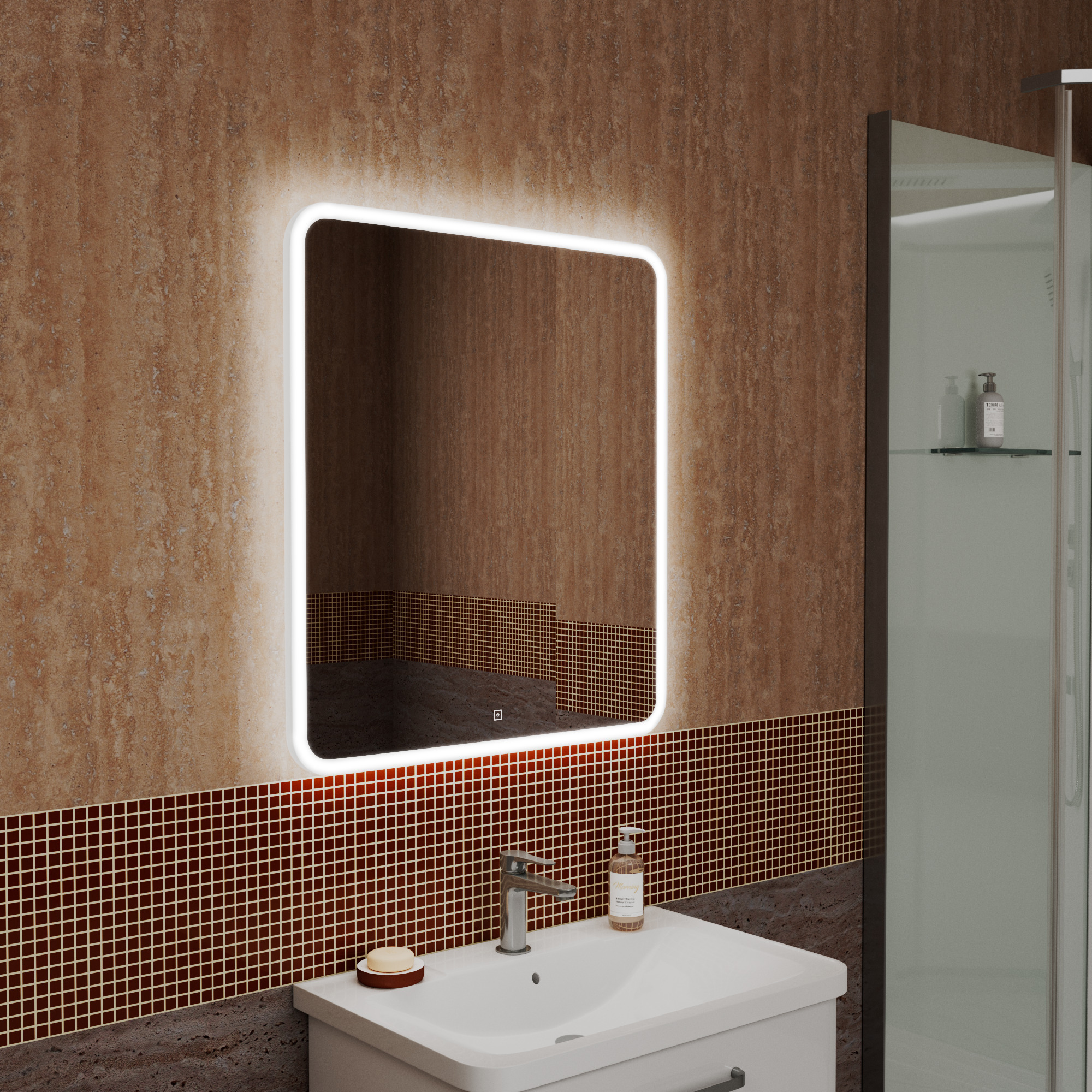 Модель обладает современным дизайном и удобным сенсорным управлением яркостью подсветки, расположенным в нижней части зеркала.